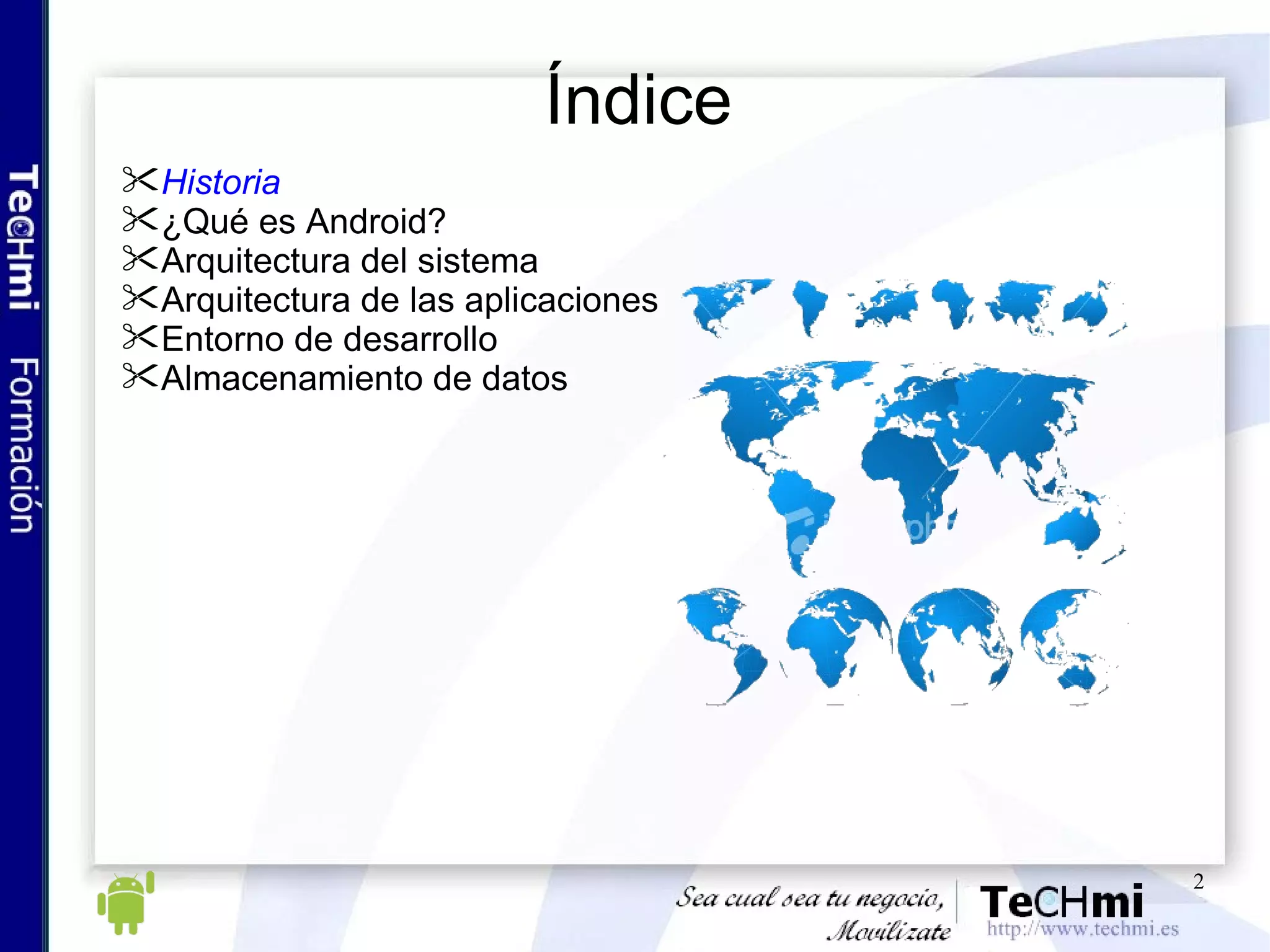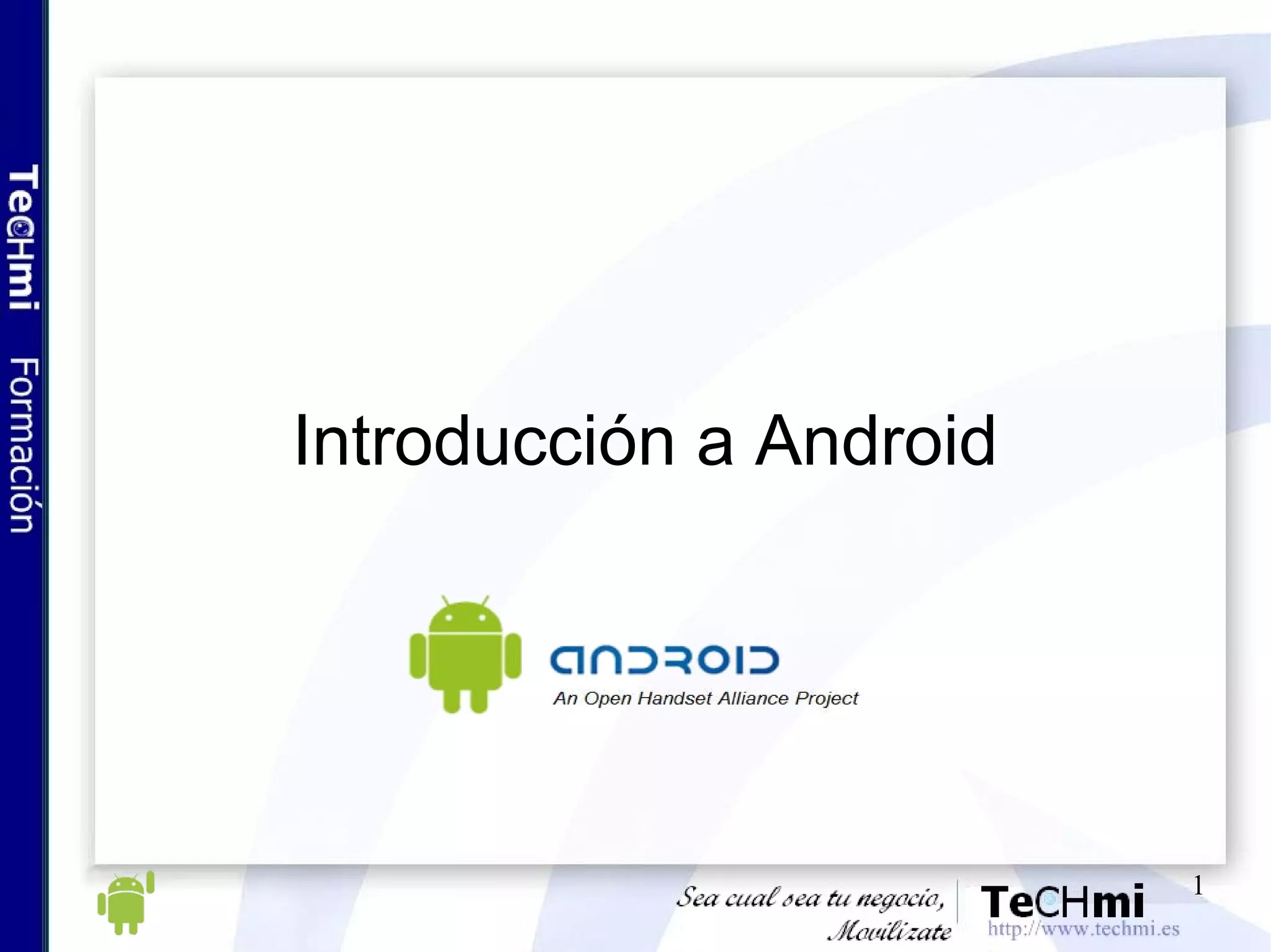 Este documento proporciona una introducción a Android, incluyendo su historia, arquitectura y componentes clave. Explica que Android es un sistema operativo móvil de código abierto basado en el kernel Linux. Describe su arquitectura en capas que incluye el kernel Linux, máquina virtual Dalvik, framework de aplicaciones y capa de aplicaciones. También resume los principales componentes para el desarrollo de aplicaciones como Activities, Services, Content Providers e Intents.