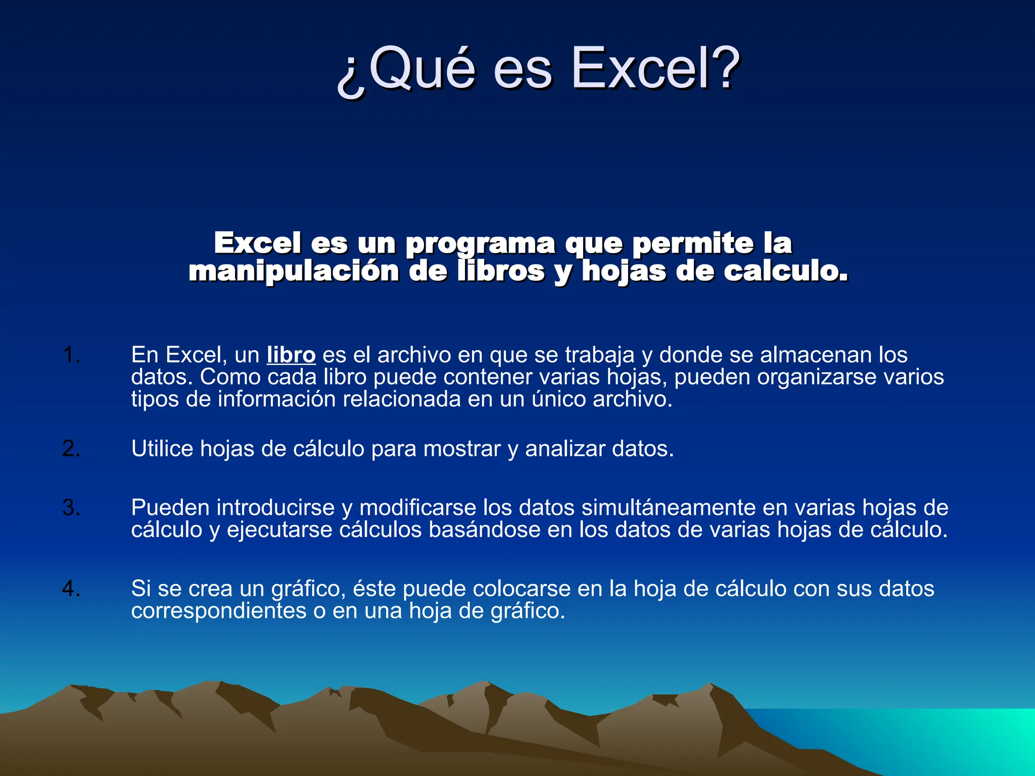 El documento es un curso introductorio de Excel que explica sus funciones básicas, como la creación y manipulación de libros y hojas de cálculo. Se describen diversas características, incluyendo la barra de menús, herramientas de edición y formato, así como la inserción de datos y gráficos. Se enfatiza la utilidad de Excel para realizar cálculos y presentar datos de manera visual.