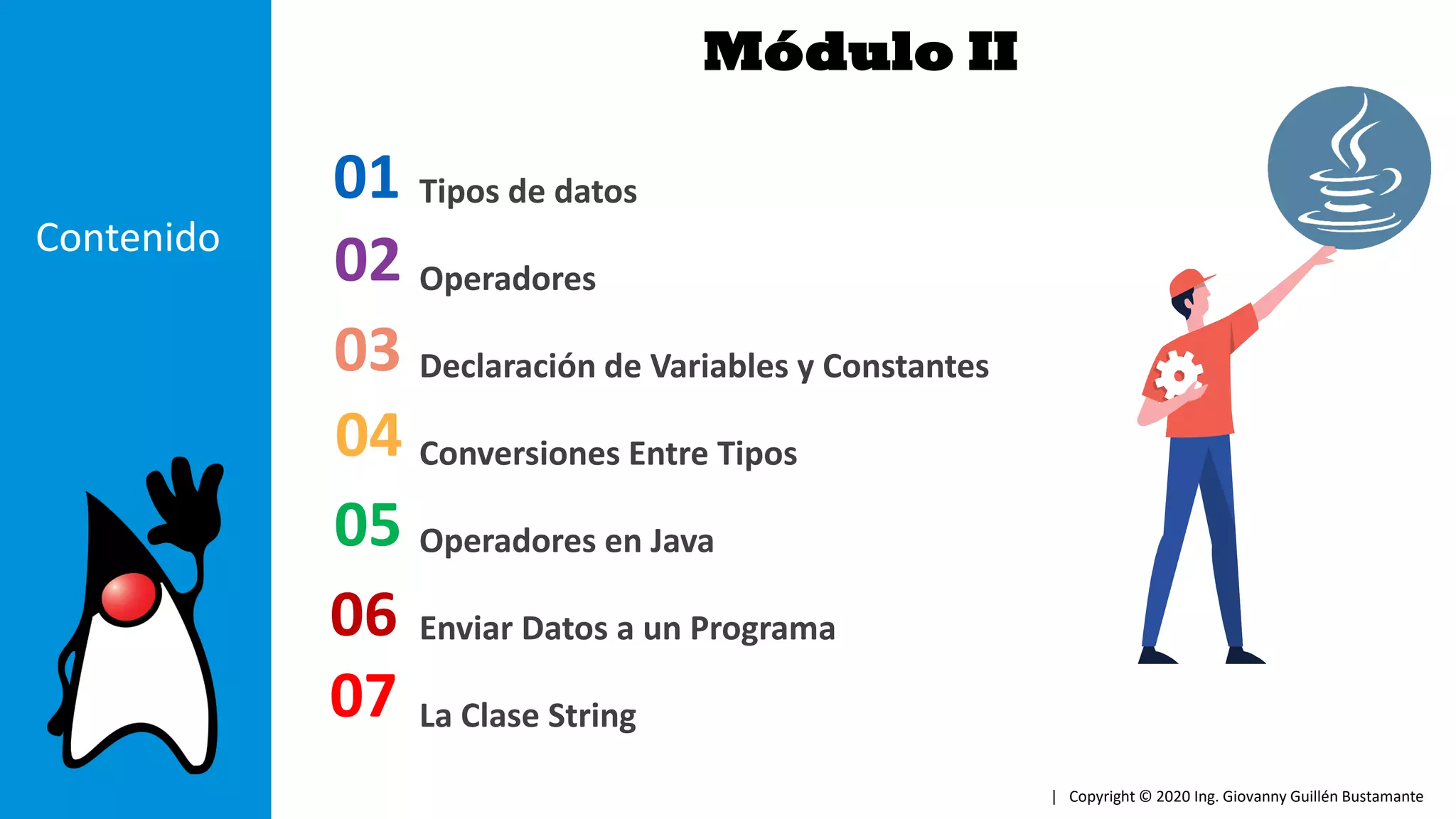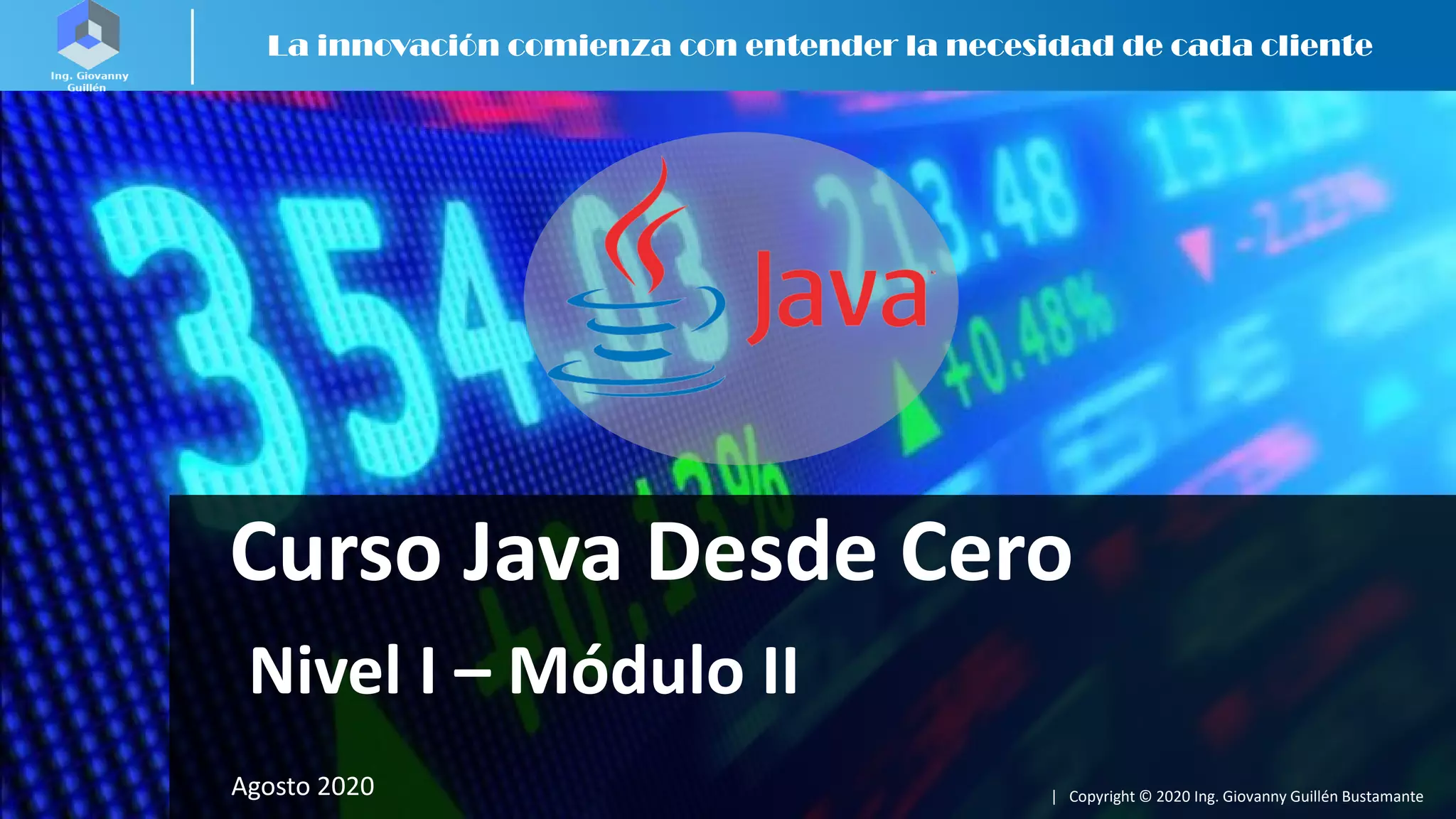 El documento es un curso de Java que cubre temas fundamentales como tipos de datos, operadores, declaración de variables y constantes, así como conversiones entre tipos. Se detalla el uso de variables locales, de instancia y estáticas, junto con ejemplos de operaciones aritméticas, lógicas y de comparación en Java. También se introduce la clase String y su uso para manipular cadenas de caracteres.