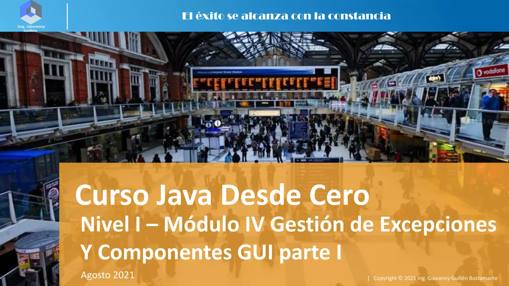 El documento aborda la gestión de excepciones y componentes GUI en Java, explicando conceptos como excepciones comprobadas y no comprobadas, y el uso de bloques try-catch y finally. También describe la creación y manejo de interfaces gráficas empleando clases como JFrame, JPanel, JButton y JTextField, así como la implementación de menús. Además, incluye ejemplos de código que ilustran la utilización de estos elementos en aplicaciones Java.