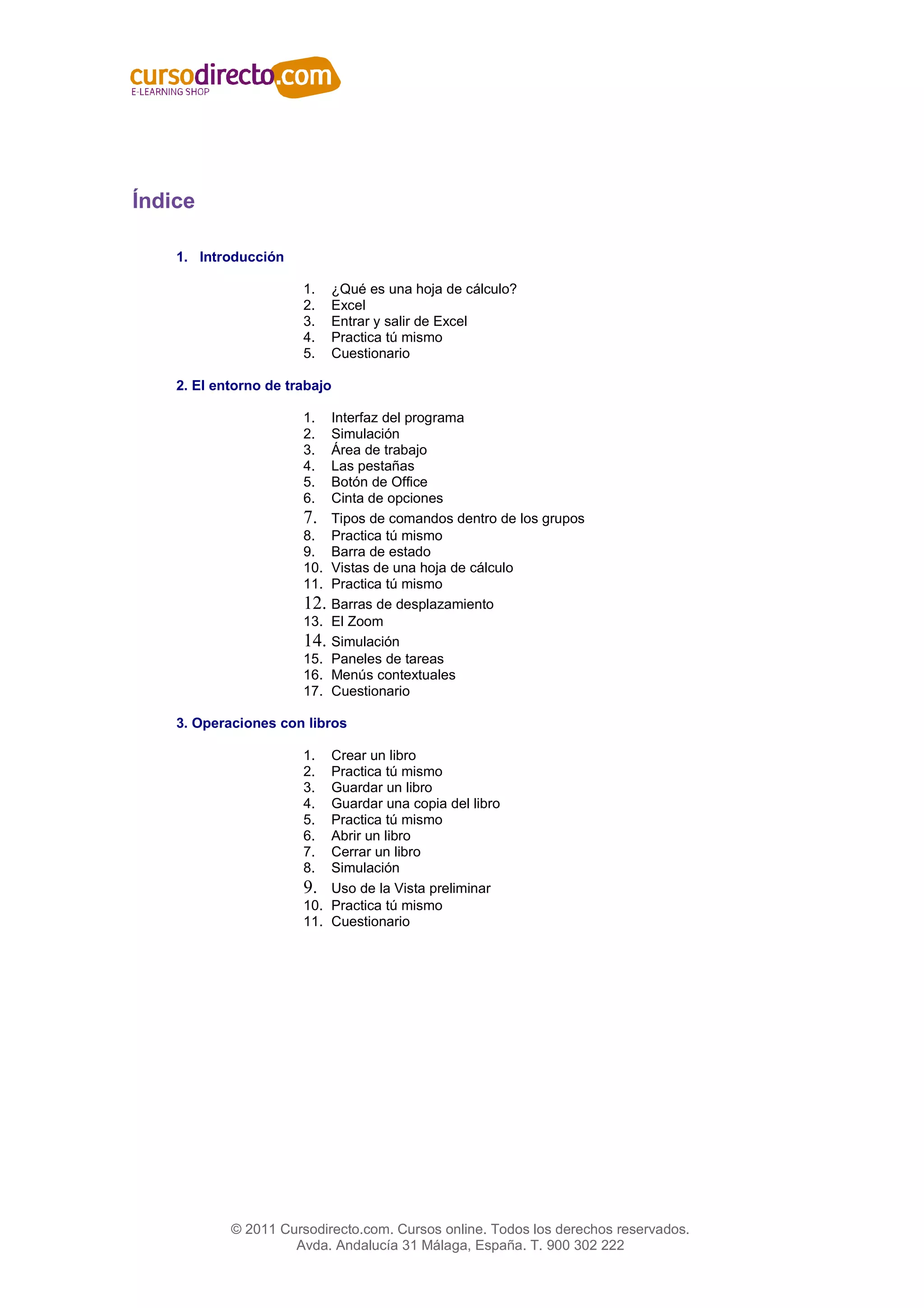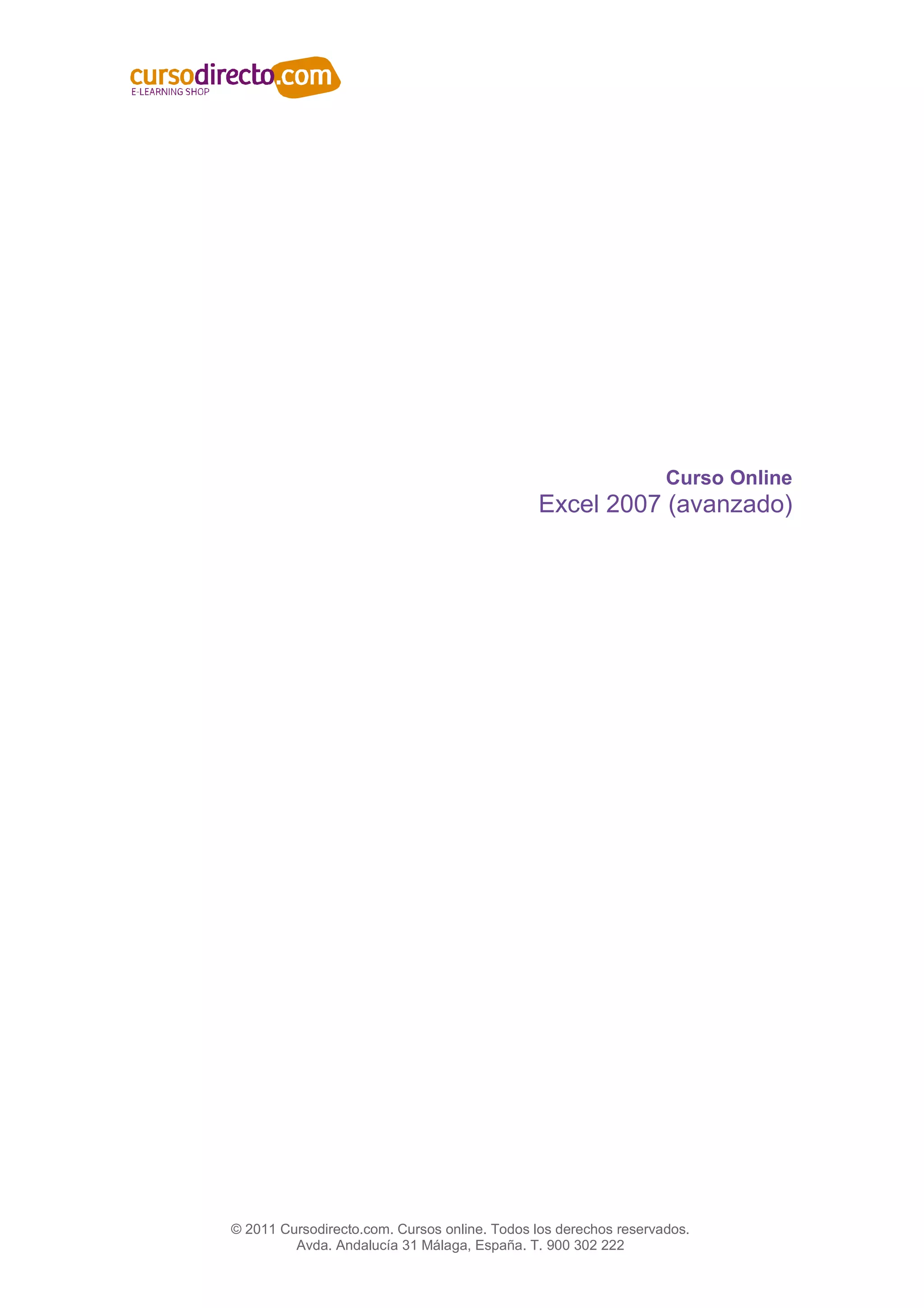 El documento es un curso en línea avanzado sobre Excel 2007, que abarca desde conceptos básicos hasta funciones complejas y herramientas de análisis de datos. Incluye diversas secciones como interfaz del programa, operaciones con celdas, fórmulas, funciones, formatos y análisis de datos, ofreciendo actividades prácticas y cuestionarios para evaluar el aprendizaje. Está diseñado para capacitar a los usuarios en el uso eficiente de Excel para tareas avanzadas en hojas de cálculo.
