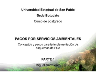 1) El documento presenta un curso de posgrado sobre pagos por servicios ambientales que analiza las bases de la relación entre la economía y el ambiente.