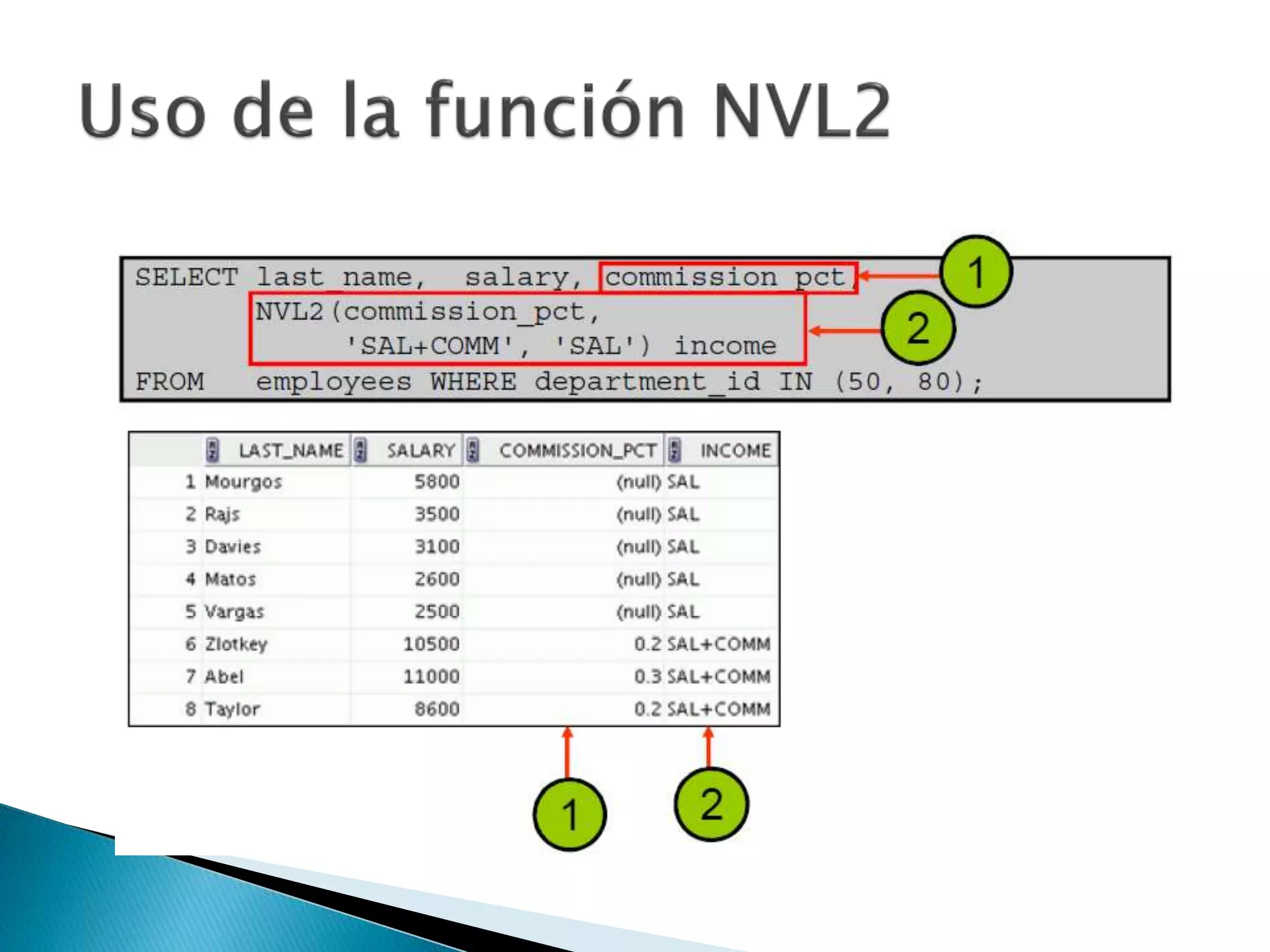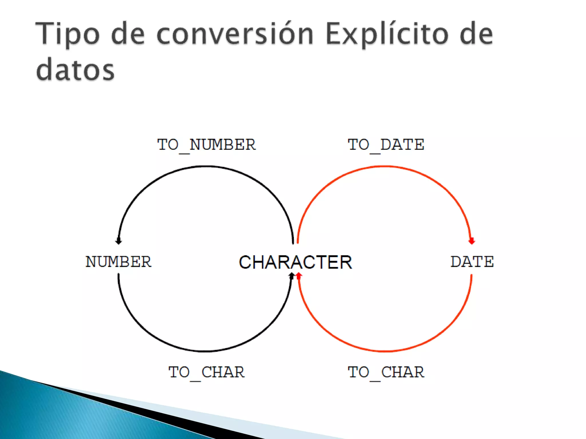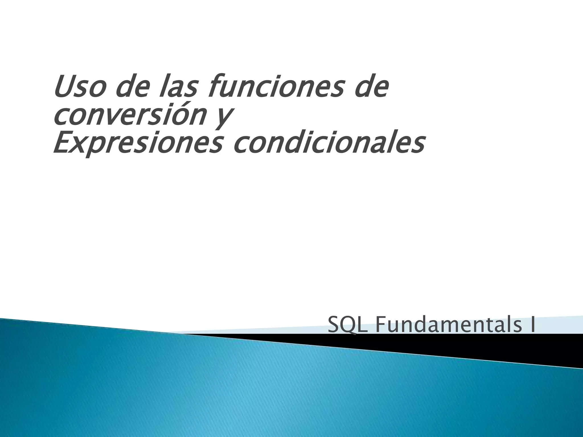 Este documento describe las funciones de conversión y expresiones condicionales en SQL. Explica cómo usar las funciones TO_CHAR, TO_DATE y TO_NUMBER para convertir entre tipos de datos, y funciones como NVL, NVL2, NULLIF y COALESCE para manejar valores nulos. También cubre el uso de CASE y DECODE para proporcionar lógica condicional en consultas SQL.