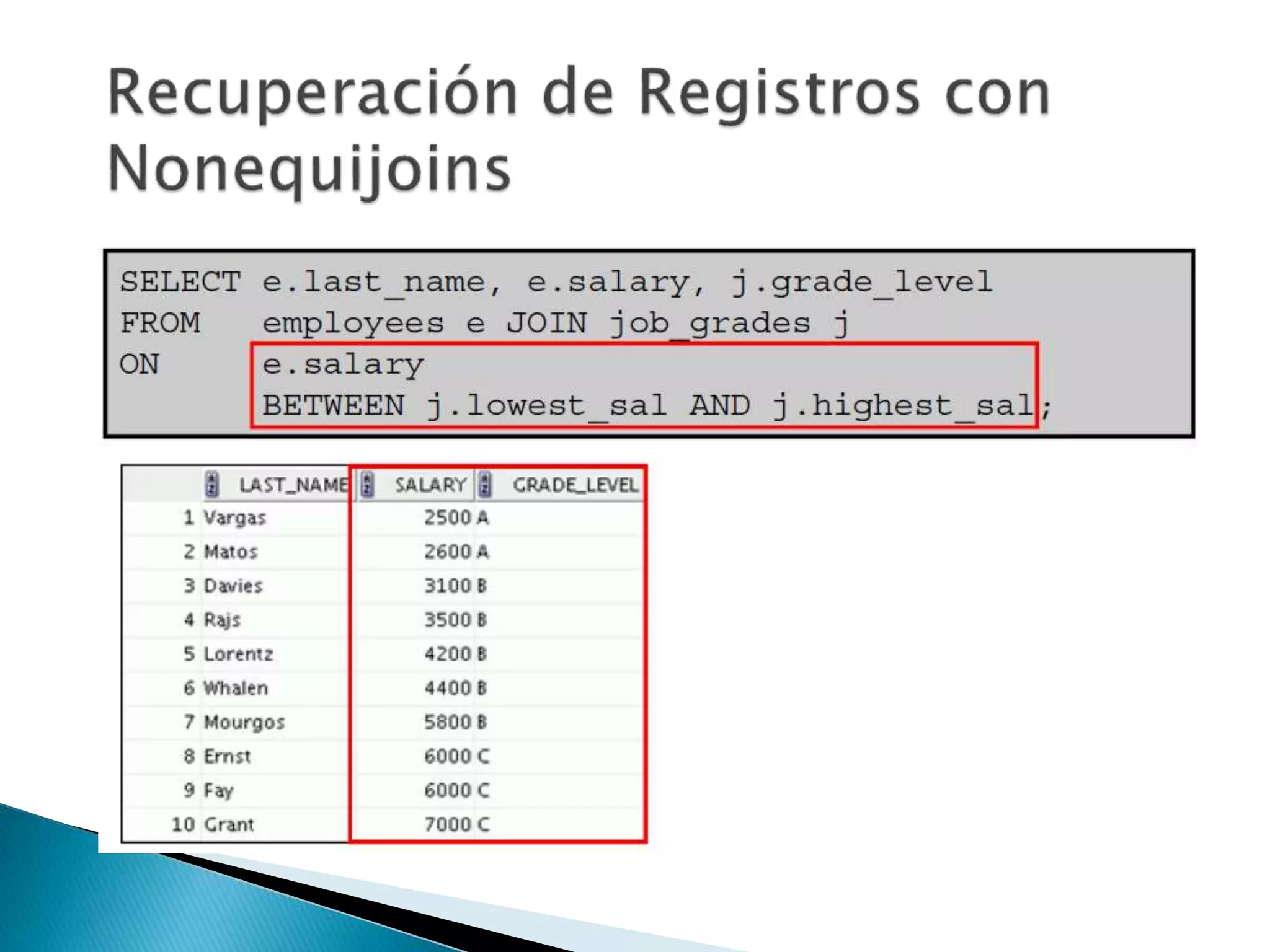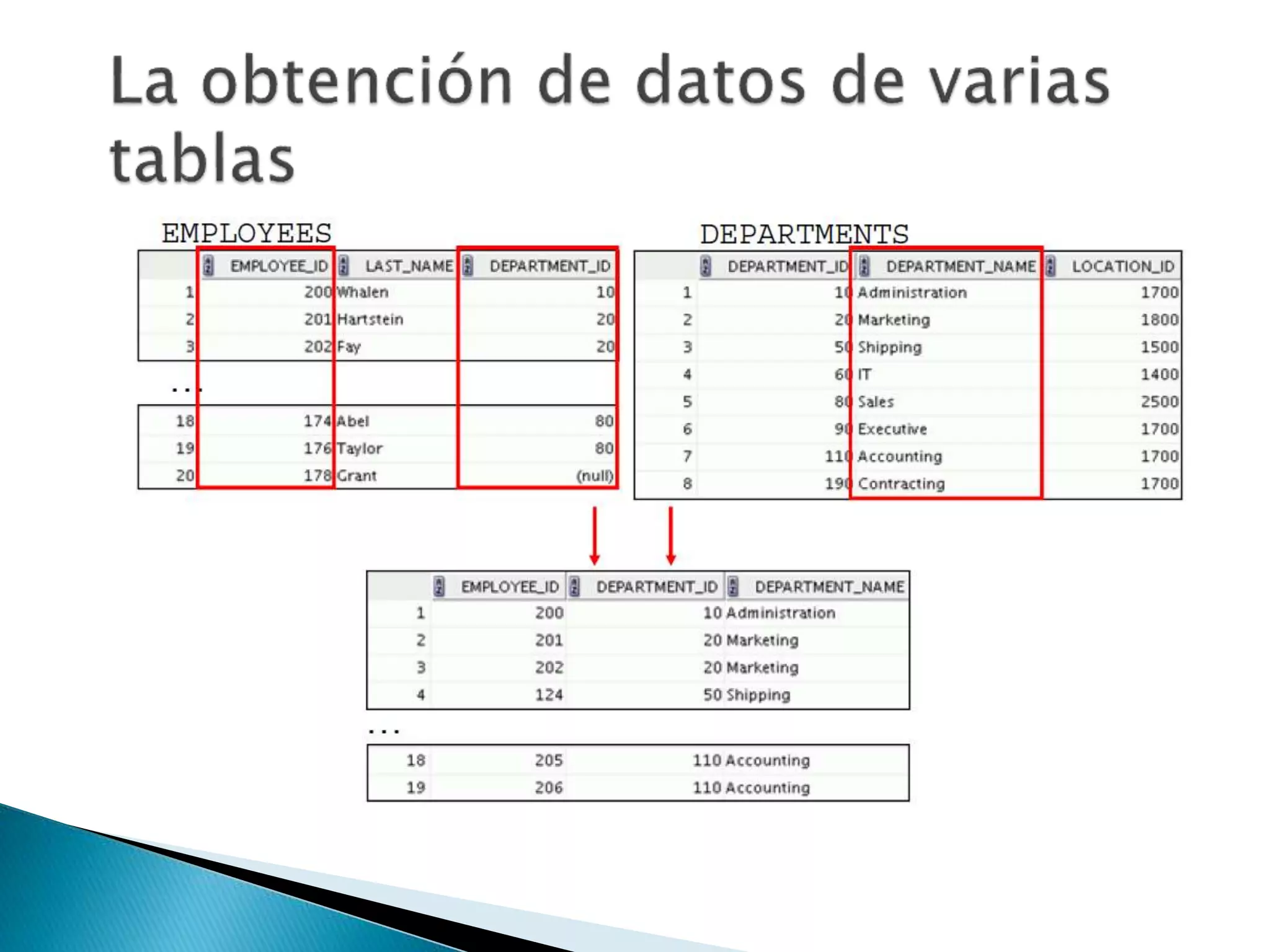 Este documento describe los diferentes tipos de JOIN en SQL, incluyendo equijoins, nonequijoins, OUTER joins, self-joins, y productos cartesianos. Explica cómo usar JOIN, NATURAL JOIN, USING y cláusulas ON para unir datos de múltiples tablas. También cubre el uso de prefijos de tabla, alias de tabla y alias de columna para mejorar las consultas JOIN.