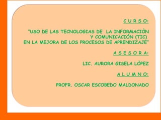 El documento describe diferentes tipos de tecnologías de la información y comunicación (TIC) que pueden utilizarse en la educación, incluyendo hipertextos, páginas web educativas, medios de comunicación en Internet y herramientas web 2.0. También discute la diferencia entre la Web 1.0 unidireccional y la Web 2.0 bidireccional, la cual permite a los usuarios participar y contribuir a la inteligencia colectiva a través de blogs, wikis y redes sociales.
