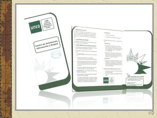 El documento describe los servicios de orientación que ofrece el Centro de Orientación e Información Educativa (COIE) de la UNED a inmigrantes. El COIE ayuda a los inmigrantes a identificar sus capacidades, posicionarse en el mercado laboral, adecuar su formación a las demandas del mercado, y buscar empleo de forma activa a través de recursos como grupos de búsqueda de empleo, talleres de entrevistas, y asesoramiento para el autoempleo.