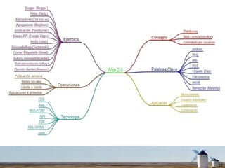 La Web 2.0 aplicada a la educación se refiere al uso de aplicaciones y páginas web interactivas que permiten la inteligencia colectiva y el control de datos por parte de los usuarios. Algunos ejemplos son blogs, wikis, localización geográfica y entornos de trabajo colaborativos. Las ventajas de aplicar la Web 2.0 a la educación incluyen evitar problemas de instalación, seguridad, colaboración, interacción con los alumnos y aplicabilidad al trabajo de los alumnos.