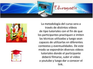 El curso básico de globoflexia de Educagratis utiliza tutoriales en vídeo para enseñar a los participantes a crear figuras con globos en cuatro niveles de dificultad. Los estudiantes deben grabarse mientras practican y subir sus vídeos a YouTube. El curso es parte de una amplia oferta de capacitación gratuita en diversas áreas, accesible a través de la web de Educagratis.