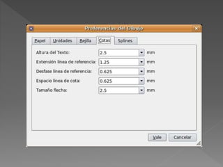 Este documento proporciona una introducción al programa de diseño asistido por ordenador Qcad. Explica los diferentes tipos de sistemas de dibujo, como los sistemas de bitmaps y vectoriales, siendo Qcad de este segundo tipo. También describe las principales características de la interfaz de usuario de Qcad y realiza una introducción a conceptos como las coordenadas, modos de selección, preferencias y ejercicios prácticos de dibujo.