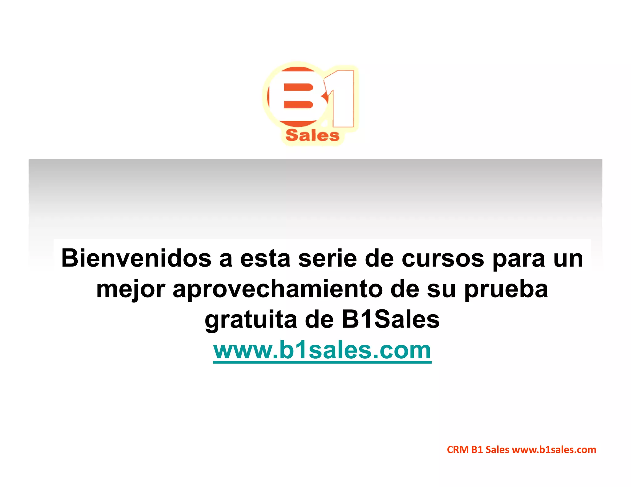 Bienvenidos a estaserie de cursos para un mejor aprovechamiento de su prueba gratuita de B1Sales www.b1sales.com CRM B1 Sales www.b1sales.com