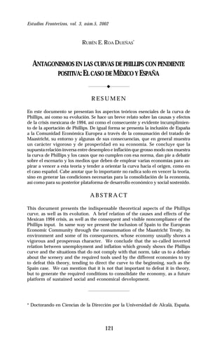Este documento presenta los aspectos teóricos clave de la curva de Phillips y su evolución. Analiza brevemente la crisis económica de México en 1994 y cómo no cumplió con la curva de Phillips. También examina la inclusión de España en la Unión Europea a través del Tratado de Maastricht y sus consecuencias económicas positivas. Concluye que casos como México y España muestran que la supuesta relación inversa entre desempleo e inflación en la curva de Phillips no siempre se cumple, y que es importante generar condic