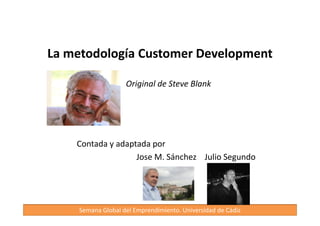 El documento habla sobre la importancia de centrarse en el desarrollo de clientes en lugar de productos. Sugiere escuchar activamente al cliente para comprender sus necesidades y problemas en lugar de tratar de vender. También enfatiza aprender de los clientes a través de entrevistas para mejorar productos y servicios.