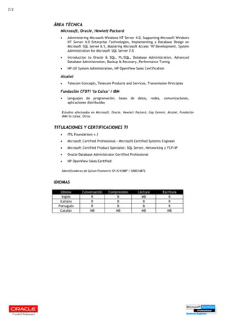 Antonio Fuentes Collàs es un consultor técnico y jefe de proyectos con más de 20 años de experiencia en gestión de sistemas, administración de bases de datos, y desarrollo web. Actualmente trabaja por cuenta propia en tareas de asesoría, consultoría, y teletrabajo. Previamente ocupó cargos como Jefe de Organización en Alcatel Services, Service Delivery Manager en Cap Gemini, y Consultor Técnico y Jefe de Proyectos en A&T Consultores.