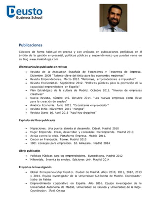 Iñaki Ortega Cachón es un profesor universitario y emprendedor español. Es licenciado y doctor en ciencias económicas y ha impartido clases en varias universidades. Actualmente dirige Deusto Business School en Madrid y imparte clases en la Universidad de Deusto y la Universidad Internacional de la Rioja. Sus áreas de interés incluyen políticas públicas, gestión del talento, emprendimiento e innovación. Ha escrito varios libros y artículos sobre estos temas.