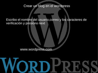 El documento describe los pasos para crear un blog en WordPress.com, incluyendo escribir el nombre de usuario, correo electrónico y caracteres de verificación; crear el título del blog; confirmar la dirección de correo electrónico; editar entradas y páginas; cambiar plantillas; agregar imágenes y videos; y concluye mencionando algunas herramientas colaborativas de la Web 2.0 como blogs y wikis.