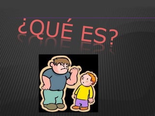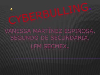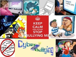 El documento habla sobre el ciberacoso o ciberbullying, definido como el acoso psicológico entre iguales a través de internet, teléfonos móviles y videojuegos online. Explora las causas como la ignorancia, sed de poder y anonimato, y consecuencias como bajas calificaciones, estrés y pensamientos suicidas. Finalmente, ofrece recomendaciones para prevenir el ciberbullying y qué hacer si se sabe de un caso.