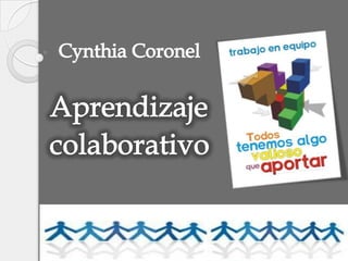 El aprendizaje colaborativo busca propiciar el desarrollo de habilidades individuales y grupales mediante métodos de instrucción apoyados por tecnología. Algunas ventajas incluyen estimular habilidades personales, disminuir sentimientos de aislamiento, y fomentar la responsabilidad compartida y autoeficacia. El objetivo final es promover el desarrollo humano a través de procesos formales e informales que estimulan la creatividad.