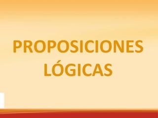 Este documento presenta una introducción a la lógica proposicional. Define proposiciones lógicas y conectivos lógicos como la negación, disyunción, conjunción, condicional y bicondicional. Explica las tablas de verdad de proposiciones simples y compuestas, y define tautologías, contradicciones y contingencias.