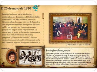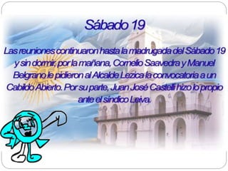 El 22 de mayo de 1810, el virrey Cisneros convocó una reunión de Cabildo Abierto presionado por los criollos liderados por Cornelio Saavedra y Manuel Belgrano, sin el apoyo de las milicias, en un hito importante hacia la independencia de Argentina.