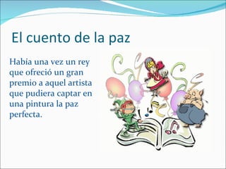 El rey ofreció un premio al mejor artista que pudiera capturar la paz perfecta en una pintura. Muchos artistas intentaron plasmar la paz de diferentes formas, pero al rey le gustaron dos pinturas en particular: una mostraba un tranquilo lago entre montañas, mientras que la otra mostraba un paisaje tormentoso con una cascada, detrás de la cual se encontraba un nido con un pajarito sentado placidamente. A pesar del caos en la segunda pintura, el rey eligió esta