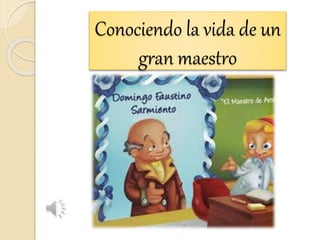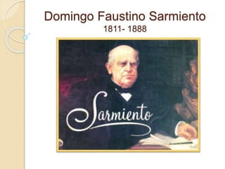 Domingo Faustino Sarmiento nació en San Juan, Argentina en 1811. Fue un periodista, escritor y presidente de Argentina entre 1868 y 1874. Durante su presidencia impulsó la educación pública mediante la fundación de cerca de 800 escuelas en todo el país y promovió el desarrollo del ferrocarril. Sarmiento falleció en Asunción, Paraguay en 1888 después de dedicar su vida a la lucha por la educación y el progreso de Argentina.