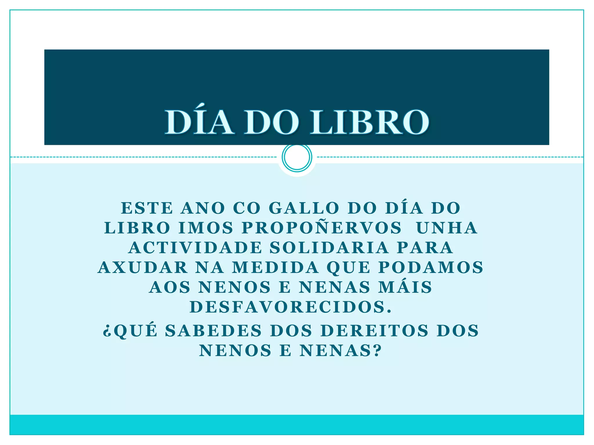 Este documento propone una actividad solidaria para ayudar a los niños más desfavorecidos mediante la decoración de marcadores que se exhibirán y venderán para recaudar fondos para Save the Children. Los estudiantes aprenderán sobre los derechos de los niños según la Declaración de los Derechos del Niño y la Convención sobre los Derechos del Niño, y cómo no todos los niños en el mundo pueden disfrutar de estos derechos.