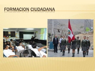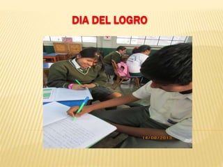 El documento describe las actividades de un día de logro para la formación ciudadana. Los estudiantes participaron en grupos en discusiones sobre los tipos de conflictos, incluyendo el conflicto de Bagua, y propusieron soluciones. También hubo un concurso sobre la riqueza cultural del país.