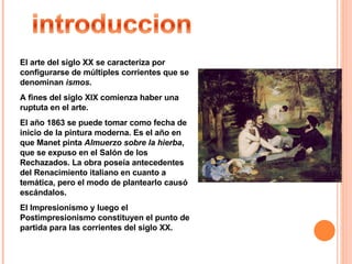 El dadaísmo surgió en 1916 en Zurich como un movimiento de vanguardia que rechazaba las convenciones artísticas y literarias tradicionales. Se oponía a la lógica, la razón y los valores establecidos, promoviendo en cambio el caos, la imperfección y la libertad individual. Sus fundadores fueron Hans Arp y Tristan Tzara. Más tarde se expandió a Nueva York y Berlín, adquiriendo un cariz político y utilizando nuevas técnicas como los ready-mades de D