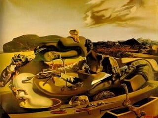 El documento resume la vida de Salvador Dalí dividiéndola en diferentes períodos: su juventud en Madrid y París en los años 20, su etapa surrealista en París entre 1929 y la Segunda Guerra Mundial, su periodo en Nueva York en los años 40 donde publicó su autobiografía y escribió para catálogos de exposiciones, y sus últimos años viviendo en Cataluña desde 1949 a pesar de la dictadura franquista.