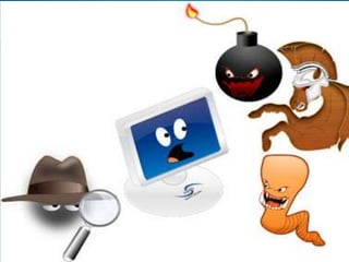 El documento habla sobre los virus informáticos y los antivirus. Explica que los virus informáticos son programas maliciosos que se propagan de un equipo a otro y pueden causar daños. También describe los diferentes tipos de virus como troyanos, gusanos y virus de macros. Luego explica que los antivirus son programas que detectan y eliminan virus para proteger las computadoras, y menciona algunas de sus características principales como la detección, actualización y desinfección.