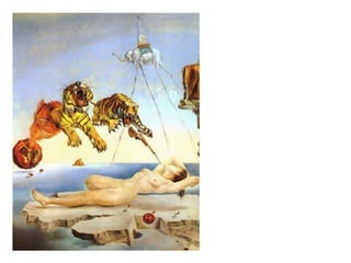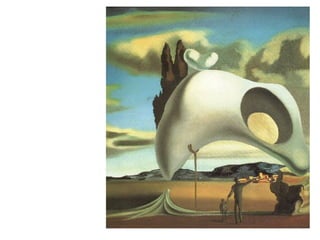 Este documento resume la vida y obra temprana del pintor surrealista Salvador Dalí desde su nacimiento en 1904 en Figueres, España hasta su consagración como pintor en la década de 1930. Describe su educación artística en Madrid y París, su amistad con otros artistas como Luis Buñuel y Federico García Lorca, y su introducción al surrealismo en París en 1929 que marcó su estilo característico.