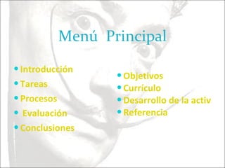 Este documento propone una actividad para estudiar la vida y obra del pintor surrealista Salvador Dalí. Los estudiantes investigarán sobre la biografía y estilo de Dalí, analizarán cinco de sus obras famosas y crearán su propia versión de una de ellas. Presentarán su trabajo en PowerPoint y lo enviarán por correo electrónico para su evaluación.