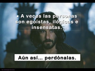 El documento contiene 11 mensajes cortos. Cada mensaje ofrece consejos sobre cómo afrontar situaciones difíciles de la vida, como el egoísmo de los demás, la envidia, o el olvido del bien que haces. Todos los mensajes terminan con la frase "Aún así..." seguida de un consejo como "perdónalas", "sé gentil", o "haz el bien".
