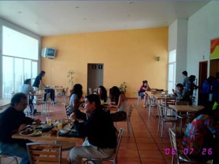 El documento presenta los resultados de una etnografía realizada en la cafetería de Villas Ibero para analizar la interacción humano-máquina en el servicio de comida. Se utilizó el framework AEIOU (ambiente, usuarios, actividades, objetos, interacciones) para describir el contexto. Se identificaron problemas como tiempos de espera largos y falta de personal. Se propuso un sistema de pedidos y entrega de comida vía tuberías neumáticas controlado por interfaces digitales para mejorar la eficiencia.