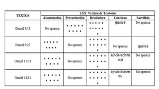 Este documento discute diferentes interpretaciones de los 1.290 y 1.335 días mencionados en Daniel 12. Históricamente, los adventistas han entendido que estos períodos proféticos se cumplieron en el pasado como años, no como días literales. Recientemente, algunos han propuesto interpretaciones alternativas. Sin embargo, el documento argumenta que la evidencia bíblica, incluida la estructura literaria de Daniel y los escritos de Elena G. de White, respaldan la posición histórica adventista.