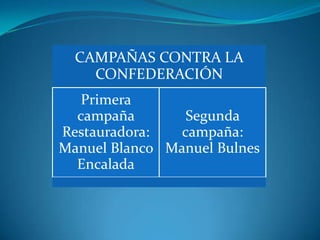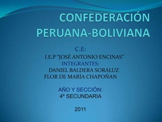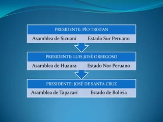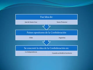 El documento habla sobre la propuesta Confederación Peruano-Boliviana en la que Perú decidió unirse con Bolivia para formar un estado poderoso. Chile y Argentina se opusieron a esta unión. Ante la oposición de la mayoría de los peruanos, el proyecto de la Confederación Peruano-Boliviana no se llevó a cabo.