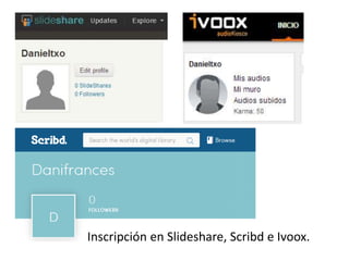 Daniel Francés Zubieta se inscribió en varios portales digitales como el Portal web del Departamento de Tecnología, el portal Moodle, Slideshare, Scribd e Ivoox. También creó una cuenta en MEGA y un blog en la dirección https://danielfranceszubieta.blogspot.com.