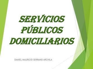 El documento clasifica y describe los principales servicios públicos domiciliarios en Colombia como acueducto, alcantarillado, aseo, energía eléctrica, distribución de gas y telefonía fija. Para cada servicio, se enumeran las normas vigentes y la metodología para la regulación tarifaria, incluyendo el cálculo del cargo fijo a los usuarios. También se mencionan conceptos como agua en bloque y servicios especiales de aseo.