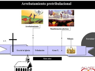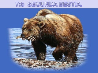 El documento analiza diversas visiones proféticas de Daniel, centrándose en las cuatro bestias que representan imperios mundiales desde Babilonia hasta el Imperio Romano y el papel del cuerno pequeño, que simboliza al Anticristo. Se destaca la cronología de estos imperios y su relación con las visiones anteriores, así como el juicio final y la segunda venida de Cristo. Además, se aborda la interpretación de los símbolos en las visiones y su implicancia en el fin de los tiempos.