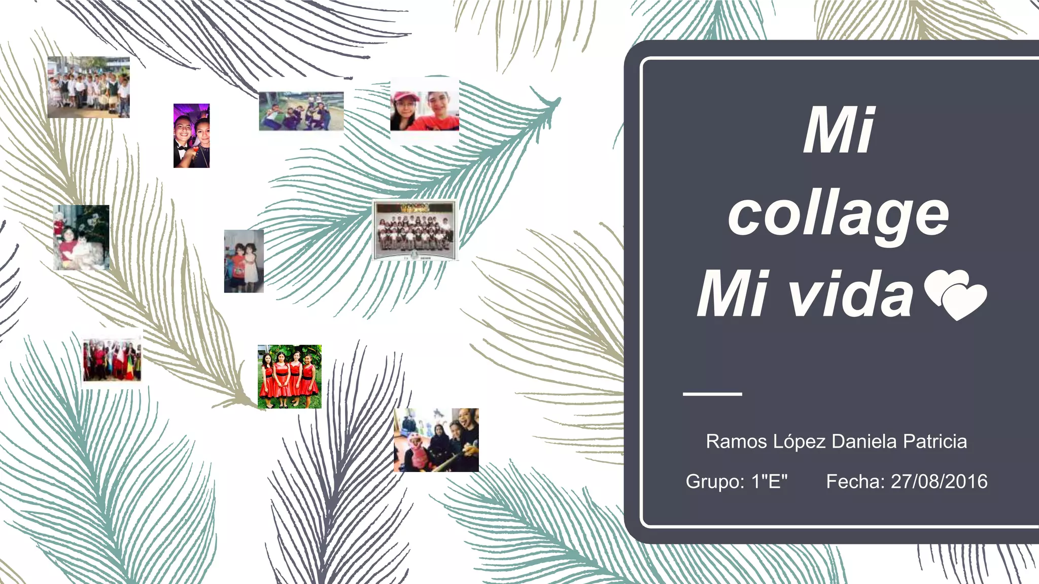 El documento presenta una serie de fotos de la autora durante diferentes momentos de su vida escolar y con amigos y familiares, incluyendo fotos de su hermana, una asamblea en el día del trabajo, un festival del padre, una visita a una casa de la naturaleza y una fiesta de cumpleaños durante la secundaria.