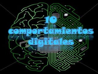 El documento presenta 10 comportamientos digitales recomendados: 1) respeto por los demás y sus pensamientos; 2) protección de la identidad personal; 3) libertad de expresión responsable; 4) integridad al establecer relaciones en línea; 5) respeto a la privacidad de los demás; 6) expresión autónoma pero respetuosa; 7) promoción de la calidad de vida; 8) cuidado y acompañamiento de menores en línea; 9) cumplimiento de las leyes; 10) reconocimiento de los derechos de autor.
