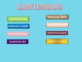 El documento lista las diapositivas tres, cinco, seis, siete, ocho, nueve y diez, seguidas de repetidas listas de la diapositiva dos.