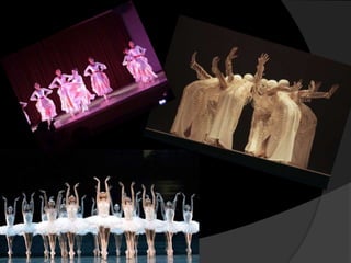 Este documento presenta información sobre la danza moderna y contemporánea. Brevemente describe a algunos de los principales coreógrafos como Martha Graham y Alwin Nikolais. Explica que la danza moderna surgió en el siglo XX como una ruptura de la danza clásica, buscando expresar emociones a través de movimientos cotidianos sin elaboraciones. La danza contemporánea fusiona danza, cine y pintura, rompiendo con conceptos tradicionales a través de lo absurdo y lo deforme.