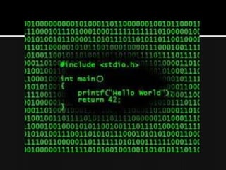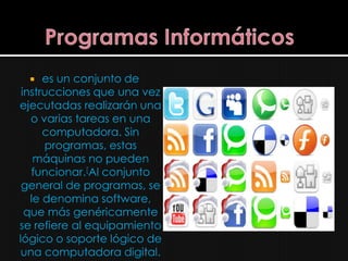 El documento resume conceptos clave de la informática como programas, sistemas operativos, lenguajes de programación, algoritmos, compiladores e intérpretes, programación estructurada y orientada a objetos, diagramas de flujo, código objeto, bibliotecas, programadores y el código ASCII. Explica que los programas son instrucciones que realizan tareas en una computadora, los sistemas operativos coordinan hardware y software, y existen diferentes lenguajes de programación como el lenguaje de máquina y lenguajes de alto nivel.