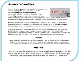 La academia Sercom Informatico tiene la misión de enseñar el manejo y uso de programas de computación en Retalhuleu empleando tecnología avanzada para brindarles a los estudiantes las herramientas más eficientes y óptimas para su desarrollo laboral. Su visión es ser la mejor academia de computación en el departamento siempre ofreciendo la tecnología más reciente y un servicio de calidad para satisfacer las necesidades de los estudiantes.