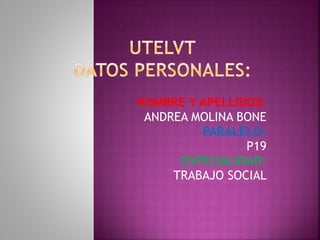 Andrea Molina Bone es una estudiante del paralelo P19 especializada en Trabajo Social que mantiene un blog en andrmolina.blogspot.com.