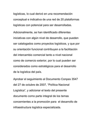Este documento resume los objetivos y contenidos clave del Tratado de Libre Comercio (TLC) entre Colombia y Estados Unidos. El TLC busca incrementar el comercio e inversión entre los países mediante el acceso preferencial a mercados. Incluye capítulos sobre agricultura, bienes industriales, servicios, inversiones, compras públicas, obstáculos técnicos y otras disciplinas para facilitar el comercio.