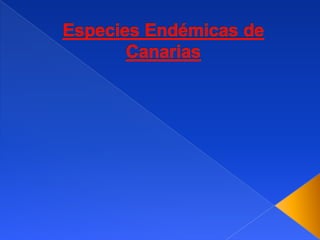 El documento lista los lugares de origen y nombres en latín de varias especies de plantas y animales de las Islas Canarias, incluyendo aves como la fringilla teydea y el pinzón azul de Gran Canaria, reptiles como el lagarto gigante de La Gomera y el lagarto tizón de Tenerife, mamíferos como el cabrito palmero y el frailecillo, peces como la catacea y moluscos como el pulpo volador.