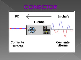 La fuente de alimentación provee la electricidad necesaria para hacer funcionar equipos como computadoras. Generalmente se encuentra en la parte posterior de la computadora de escritorio y contiene un ventilador para evitar sobrecalentamiento. Existen dos tipos principales de fuentes de alimentación: AT y ATX, siendo esta última la más moderna y segura al no requerir de un interruptor de encendido de 220v.