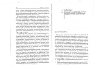 1) El documento discute nuevos métodos de enseñanza centrados en el desarrollo de capacidades prácticas para la acción y la transferencia de aprendizajes a diferentes contextos reales, más allá del aula. 2) Entre estos métodos se encuentran el estudio de casos, la solución de problemas, la construcción de problemas y los proyectos, los cuales promueven un aprendizaje basado en la resolución de problemas de la vida real. 3) A diferencia de métodos tradicionales, estos parten de problemas y situaciones de la pr